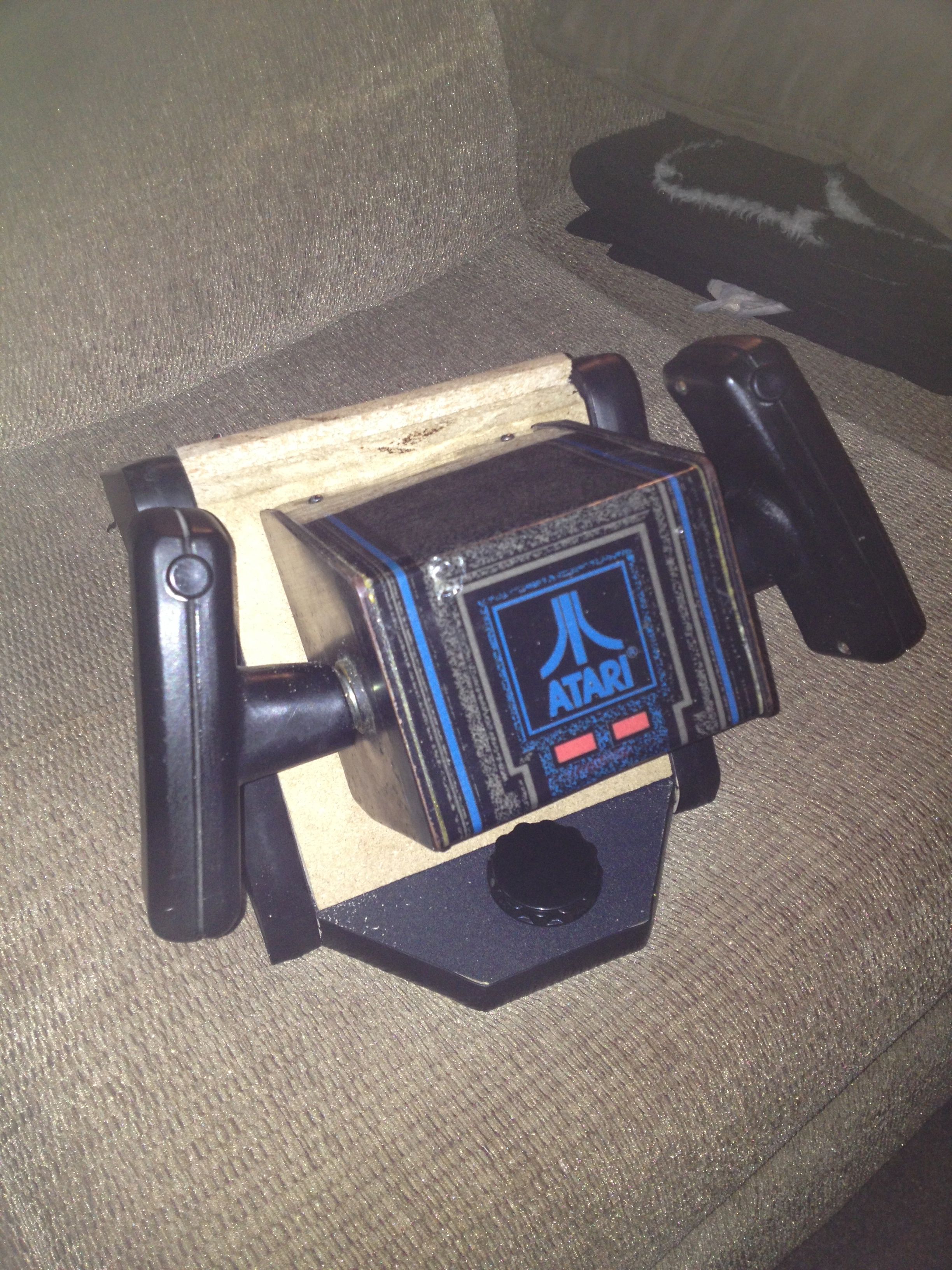 here is a quick pic of the "proof of concept" for the controller add on.  if you look thru this post, this hang-on add on sits on the cab just like my star wars controller add on.  i have two sidewinder hacks wired to a 15 pin VGA and all of the wiring for this add on plugs into that port.  i'll be doing the same attachment to my star wars controller also someday down the line.
