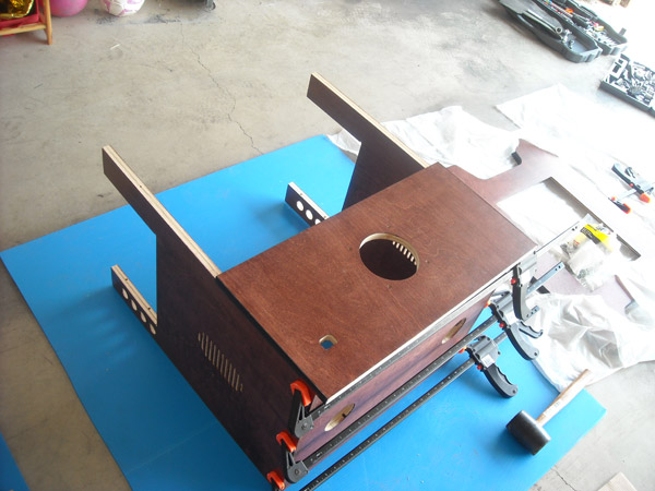 Lined up the top panel just right, clamped it down, and screwed it in place.