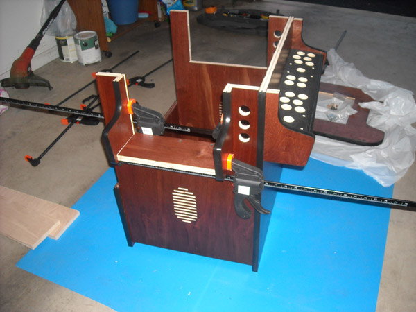 Third CP side panels. Note that I strayed from Arcade Depot's directions here, as their directions said to glue on the side panels before installing the piano hinge. But then when you got to the step of installing the piano hinge, the directions said to adjust the side panels for proper clearance (which would have already been glued in place at that point had I followed the directions step-by-step).