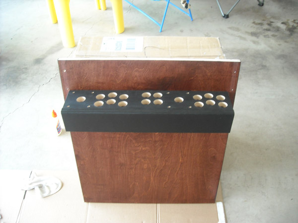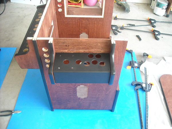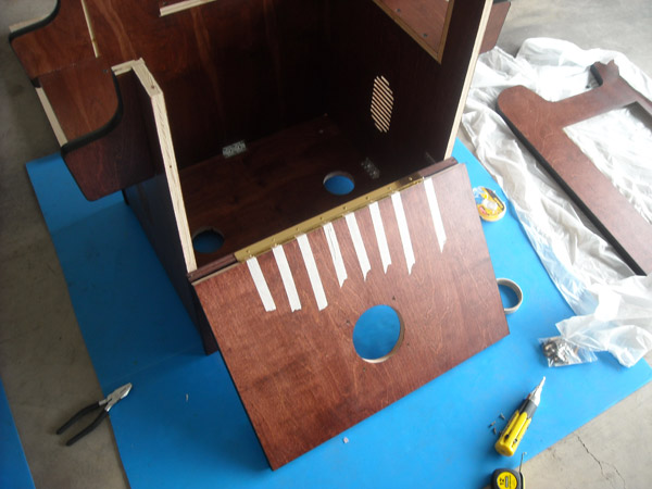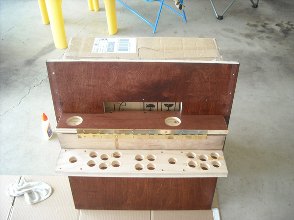 Third CP side panels. Note that I strayed from Arcade Depot's directions here, as their directions said to glue on the side panels before installing the piano hinge. But then when you got to the step of installing the piano hinge, the directions said to adjust the side panels for proper clearance (which would have already been glued in place at that point had I followed the directions step-by-step).