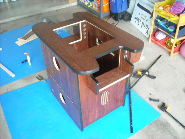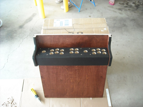 And finally, a preview of the finished product. The top is just resting in place in these pics - I don't want to actually attach it until I figure out how I'm going to secure the monitor to it. Arcade Depot custom-routed it for my LCD monitor (an HP LP2065), so now I just need to figure out how to hold it in place.