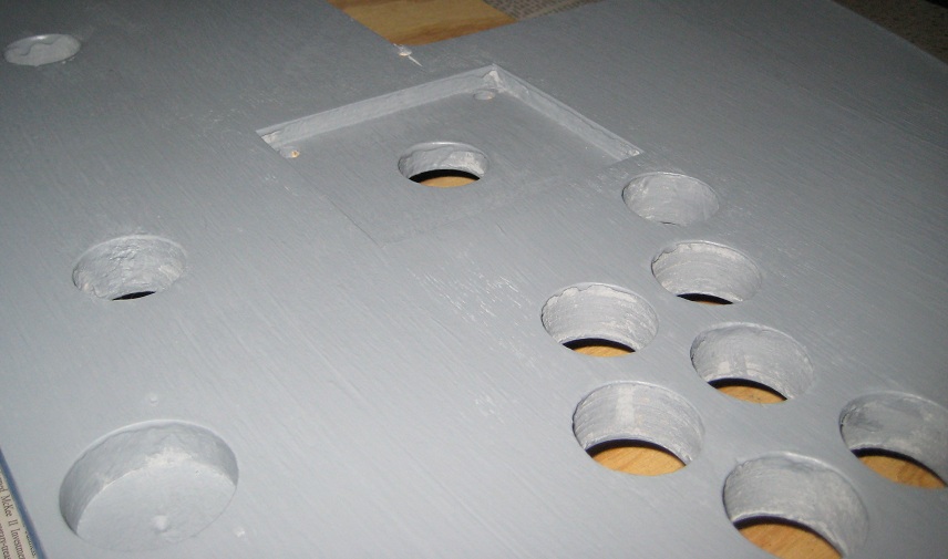 The top of the CP lid is finsihed.  I'll leave it with just sanded primer until I get the "Totally Amazing Custom Opt2Not Control Panel Overlay Design" (tm) printed and stick it on top.   ;D