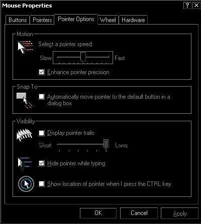 other than the control panel/mouse options i dunno....  you have some kind of program like tweakxp installed?  check those settings..if not...nevermind :D