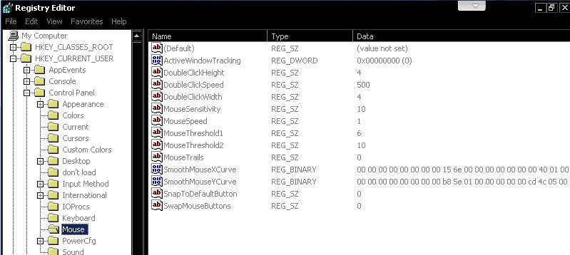 So I guess my last question for the moment is the proper way to disable the windows mouse acceleration.  Just wondering if this was the best way: