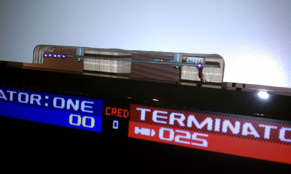 In the last couple of weeks i had a MAME marquee printed. I had been using a umk3 marquee that i printed on my laserjet just to have something there. I also added 2 aimtrack guns. I used 2 yobo guncon2 guns that i gutted and installed the aimtrack modules into. I also added the led bar behind the tint above the monitor. I was worried that the tint would affect the performance but it works great without any changes from the default settings.