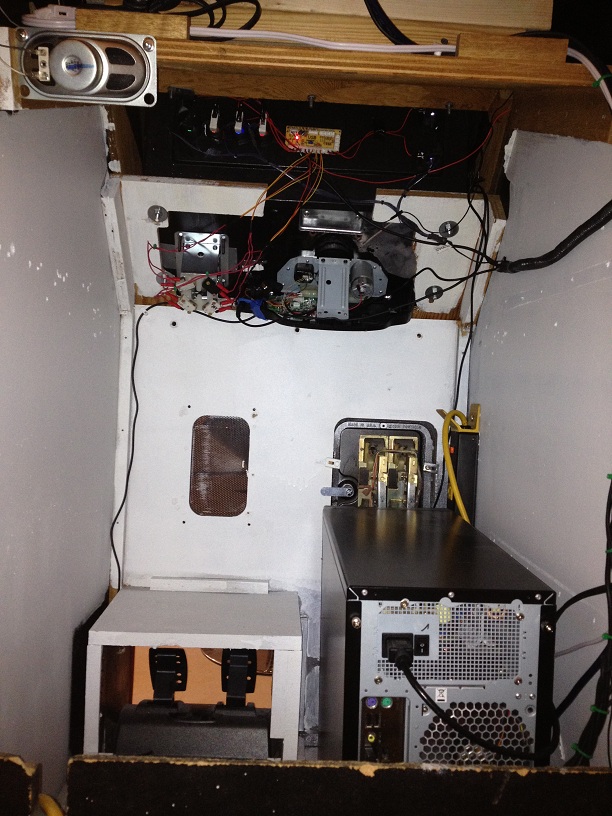 I hear with enough KY you can put a Cadillac in a dog house. The buttons up top were for TV power and input. The TV I have now powers on automatically when I reach in the coin door and turn on the power strip. I havent really ever changed inputs so there isnt a need for the buttons (and I can change the input with the remote control) I might leave the red one up there though, the idea of reaching up to exit a game seems like a great idea to me. I havent gotten that far yet though. The LED you made me are still the best part of this project.