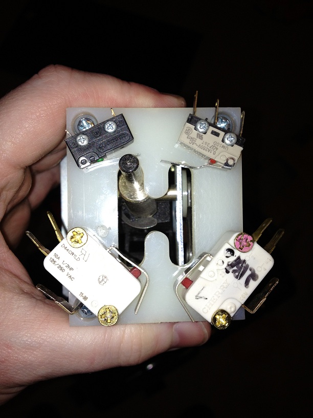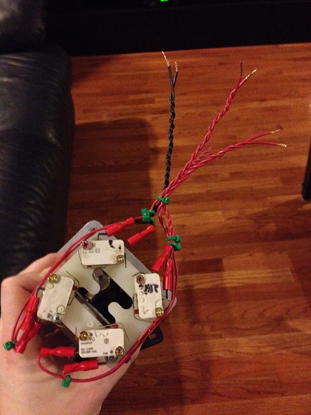 Next Ghetto-ness, the shifter. When I got the shifter from UncleT everything was fine, it was either in storage or my first attempt to mount this thing that I broke 2 cherry switches. I couldnt find 2 replacement switches, they are oddly small, so I hacked them, kinda. I basically mounted 2 regular joystick cherries: