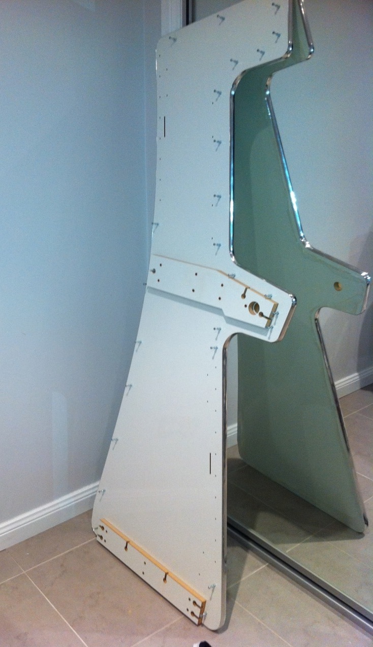 The final detail to decide was the finish of the MDF on the cabinet.  Arcadeworx offered 3 finishes: raw MDF, satin black, gloss white.  Most of my decor is contemporary gloss white  and I was a little biased towards it.  I looked at the option of painting the raw MDF gloss white and after a some discussion with friends it was felt by all that it would be very difficult to obtain a nice gloss finish on the MDF. The gloss white option from Arcadeworx is a laminate finish.  So again my personal lack of confidence led to me cheating again and going for the pre-finished option. Also, a laminate finish would add a level of durability especially when little nieces and nephews are running around.