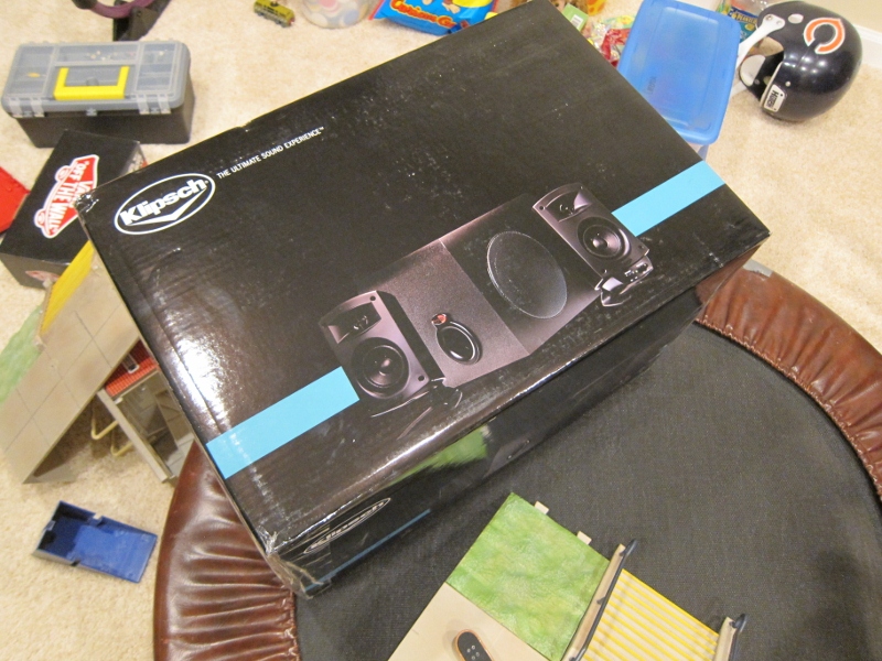 I needed to get my cabinet speakers out of the basement so today I finished installing them in the the cabinet. For speakers I went with pretty much the same method that is recommended in the Project Arcade book. I got a good deal on the Klipsch ProMedia 2.1 speakers just before Thanksgiving. A bit overkill but the sound is great and I'll be prepared whenever the Mamedev's get around to converting Pac Man to stereo sound.