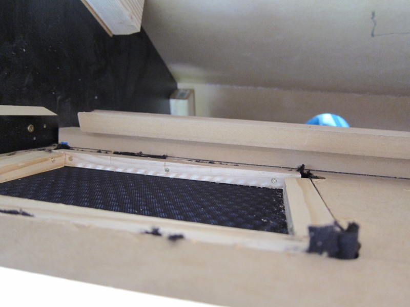 I wanted to install the speakers after the cabinet was put together so I added a lip at the back of the speaker grill shelf so I could just slide the speaker assembly in place.