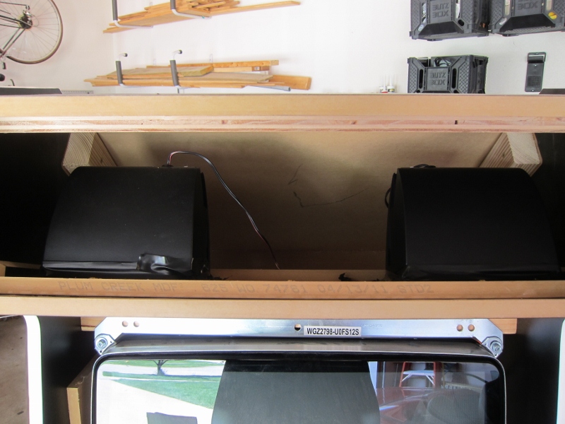 Here it is installed in the cabinet. The lip makes it so I don't have to worry about trying to screw the speaker shelve down in back.