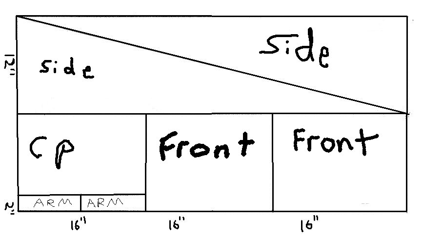 Also, i started the draft using a 4x8 piece of wood in mind to make a full sized cab. Before i started actually drawing out the cab i thought that i would simply double up the measurements. Physically drawing this out proves that this would be greatly disproportionate for the average human to play. While a 32inch control panel is feasible,the vewlix by default also uses a large, wide screen monitor however a cabinet with an 8 foot height from tip to tip is not.