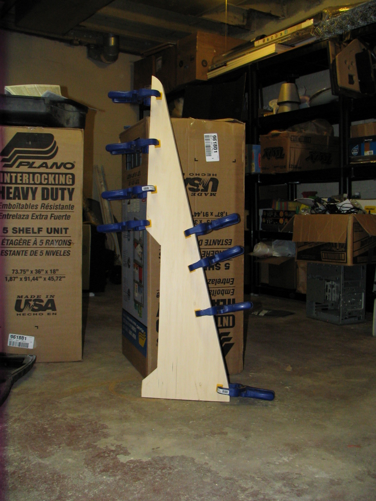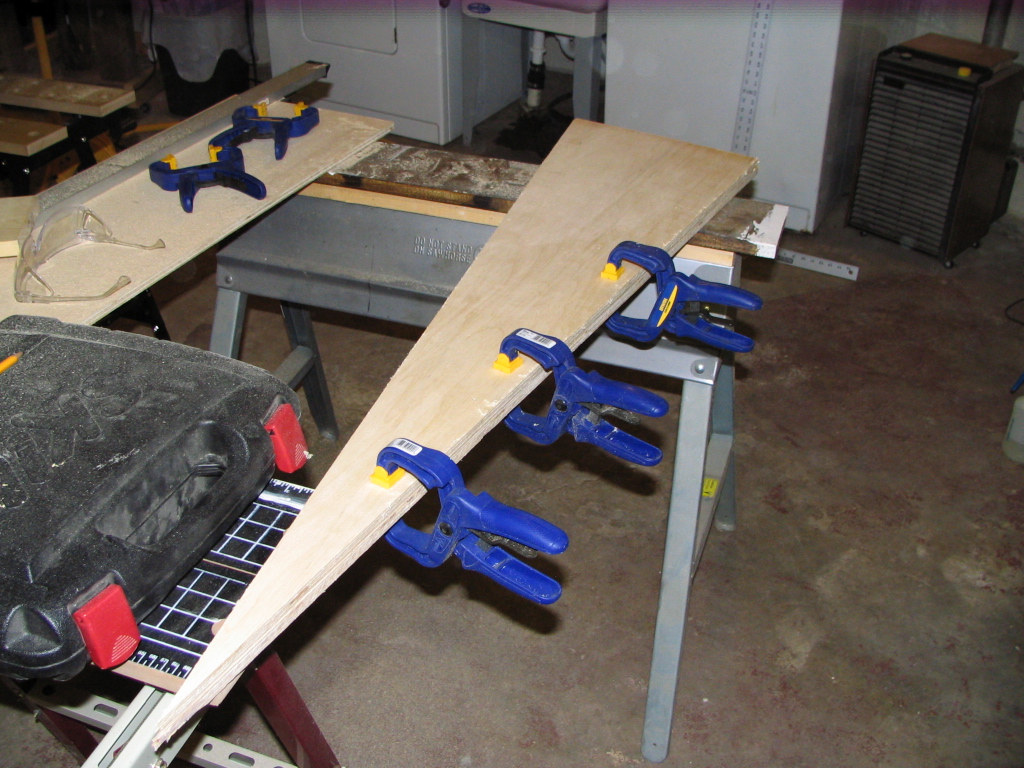 Clamp the triangles together. You may flush them out with a router if they are slightly different in size. Now round off the bottom front and top corners.