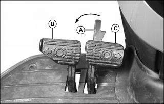 The left throttle collar (green) and right throttle collar (blue) both turn independently of each other around the throttle axle. (yellow)