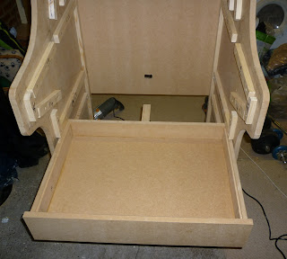 I've rounded the edges of the marquee and control panel now and I've found a place that does vinyl prints and backlit prints really cheaply, though I'm undecided as it looks quite hard putting full size stickers on (I may cop out and get a poster made and glue it on). In hindsight I should have made the marquee deeper as measuring for the speakers and to fit the screen at the angle I want has shown that it's a very small space for speakers.