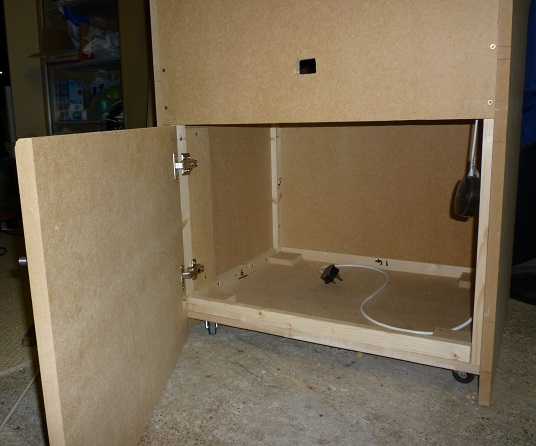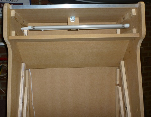 The cabinet at Koenig's site seemed too small to me (1.5m by .6m) and the control panel not quite deep enough, so I increased it to about 6 foot tall (185cm), added 6cm to the width and 5cm to the depth.
