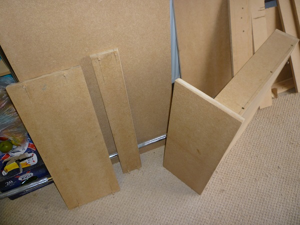 So far I've spent £63 on three bits of 2440x1220x18mm (that's 8'x4' 3/4" in old money) and 8 lengths of 2100x34x18mm (about 8' 1.5x.75").