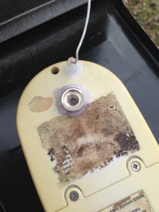 I suppose the spring could be de-soldered and a piece of wire soldered back, so the antenna could exit out of the back of the metal mail box, like I did the first time.