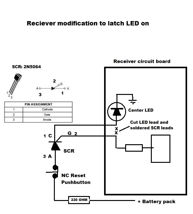 So i took the receiver apart and added an scr in the center led. I also added a Normally Closed button mounted to the top to reset the light when I see that I do have mail.