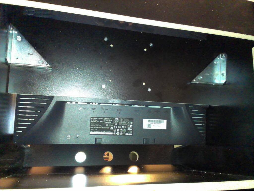 Attach the monitor to the VESA mount panel using M4-.07 machine screws (25mm length).  Place the monitor & panel inside the bartop resting on the plexiglass.  Adjust the placement so the monitor is visible.  Use the included angle brackets to attach the panel to the inside of the cabinet.