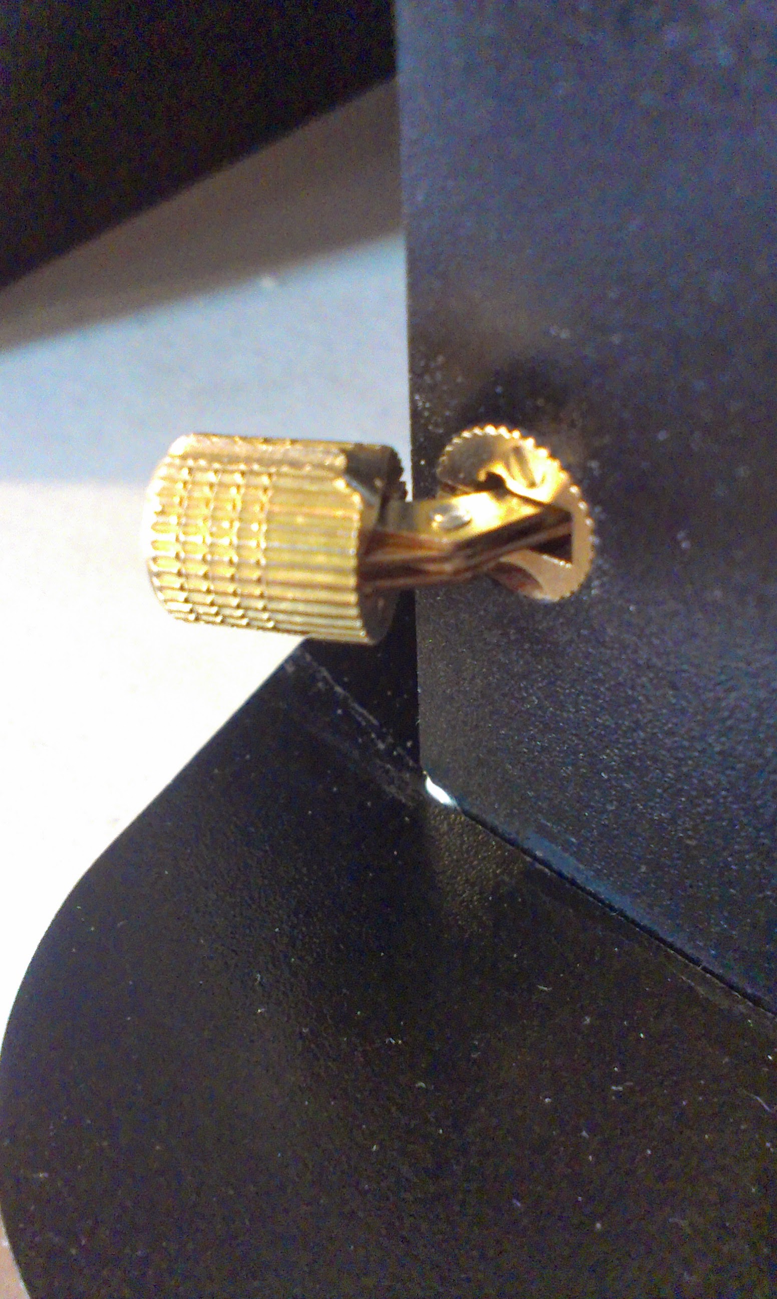 Zoomed in...  it's an invisible barrel hinge.  This kit will come with 2 of them.  As well as 2 16-pound-pull neodemium magnet latches that attach the the top of the control panel and control panel shelf...