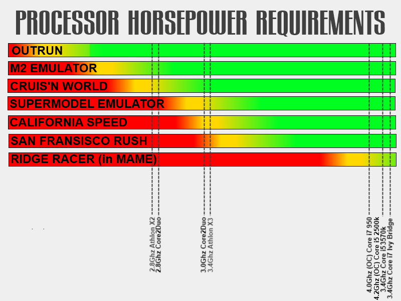 Only spec that plays Ridge racer to same level as aracde. Tested with Arcade machine next to PC.