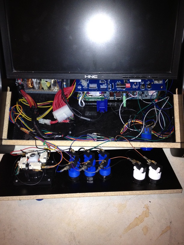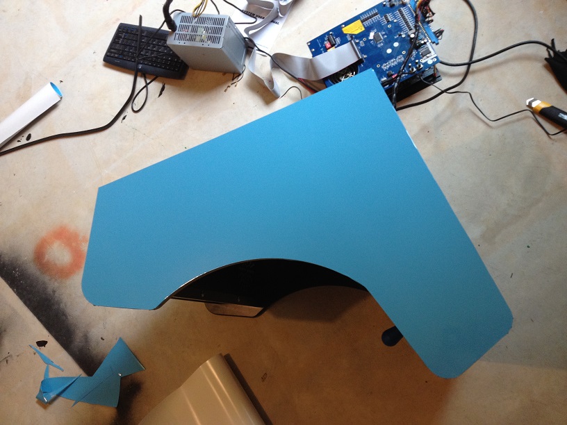 wasnt a fan of the black CP and Jake wanted the joystick bolts to show on top.  So I ordered a new CP panel from haruman with the joystick  base routed out and the bolt holes pre cut. Used some left over blue Vinyl to cover it, and reinstalled the same hardware.