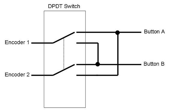 The DPDT switch changes which button is connected to which encoder input.