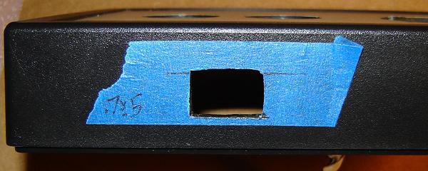 Blue painters tape makes it easier to see the boundaries of the 0.7" x 0.5" mount hole.