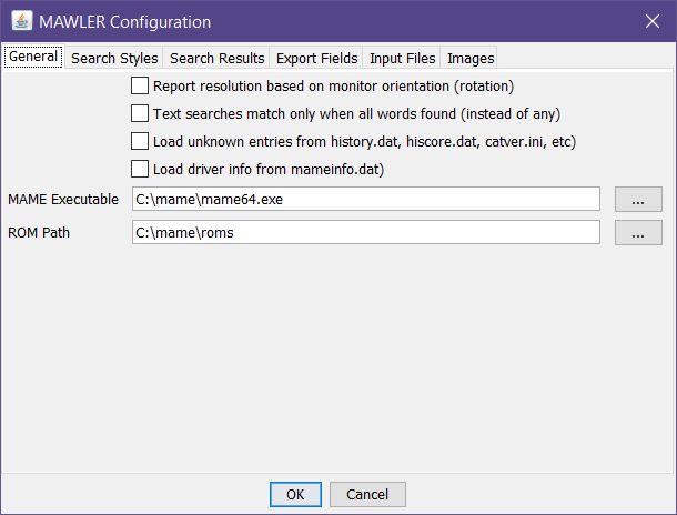 • The executable and rom paths should be fairly self-explanatory