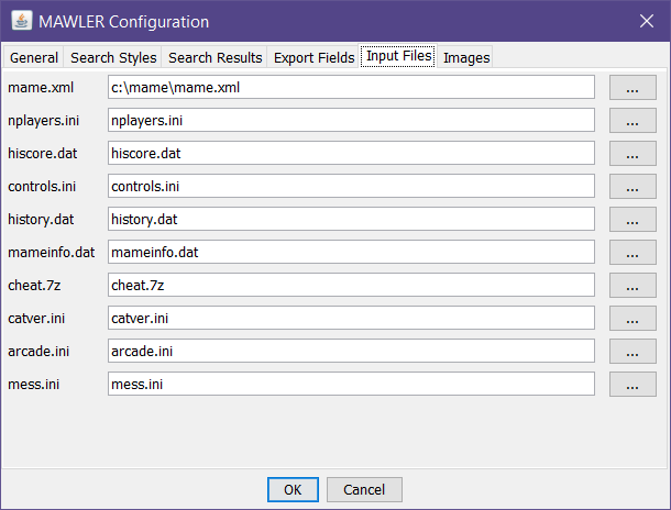 Lets you define where the source input files reside.  The buttons with ellipses will show a file selection dialog: