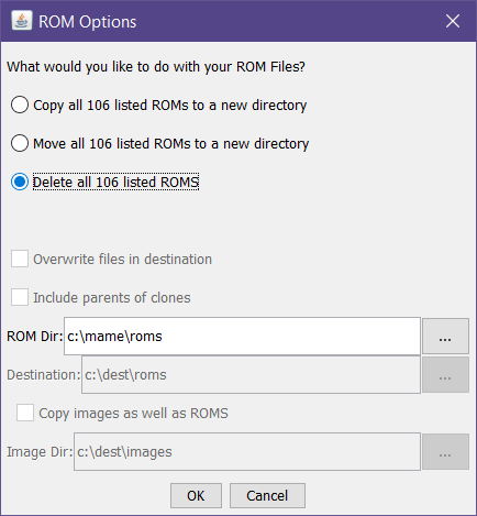 • "Copy ROMs" brings up a dialog that lets you select what to copy/move and to where, or to simply delete - again, selected or all
