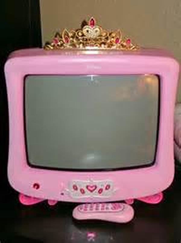 Got home and had to test it for awhile to ensure it worked correctly so put in some batteries and hooked it up to the TV I thought would be used in the build - an old 13" Disney Princess TV that my neice had outgrown.