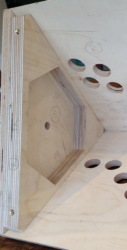 Firstly, the triangle end panels needed to be glued to their mounting pieces. I used some extra strong PVA adhesive and clamped with 3 screws, one in each corner.