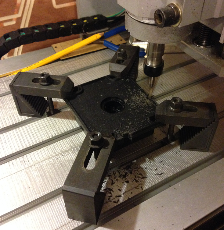 The U360 was the other joystick (on the spinner panel) that was causing problems due to "bumps" around the mounting plate opening.  I've solved this inserting a 3mm plexi sheet between the U360 base and the metal mounting plate. Then I milled out a 2mm recess around the bumpy raised part so 1mm fits nicely over the top of it.  The mounting plate then sits flush on top.  This lowers the joystick by 3mm which doesn't seem too bad.  It also negates the need for a dust washer as the plexi ring kind of acts like one since it's so close to where the shaft sits.  This is good because I don't want flappy dust washers during the rotating of the panels.
