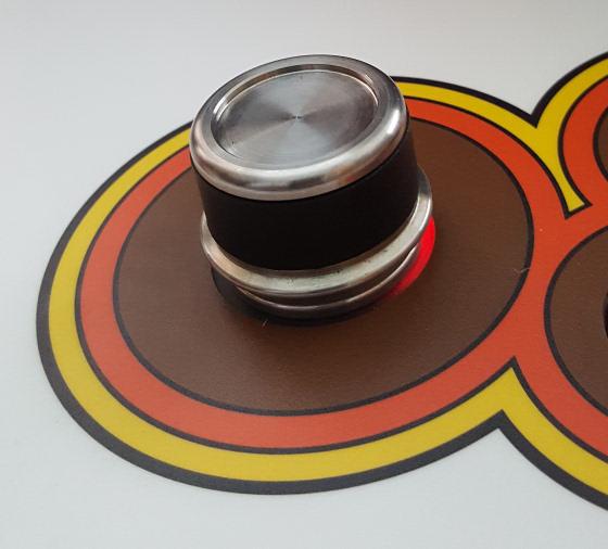 I also had the same issue with the Defender joystick, where the gold/brassy colour of the joystick housing bled through the edge-lit plexi looking ugly.  So, out with the defender joystick too...