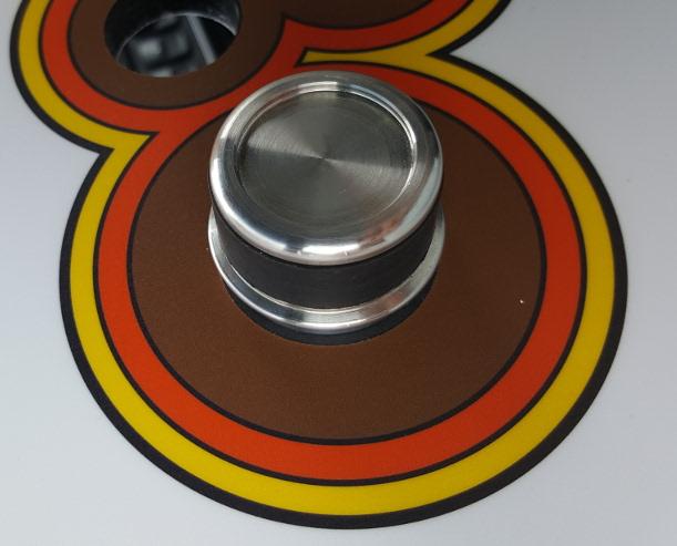 I also had the same issue with the Defender joystick, where the gold/brassy colour of the joystick housing bled through the edge-lit plexi looking ugly.  So, out with the defender joystick too...