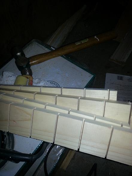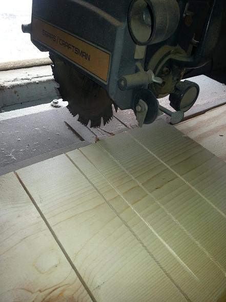 The switch on my table saw went out midway through the project so I had to use something else, it took me a while to gauge the depth and spacing for my cuts as you can see here.