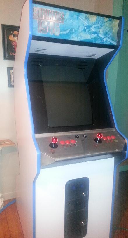 The button location will change, and the Strikers Marquee is obviously a place holder. I'm trying to finalize my marquee art so I can order one of those translites that stpcore is offering but I've decided to redo the space portion and lose the Macross jet. After setting Macross Plus to easy mode, and playing through it in MAME I've decided it's a quarter muncher and so ridiculously hard it's barely fun. I really want the art to have nods to specific games but not have the plane pictured be easily identifiable as "this" ship from "that" game. Enough talk here's what she looks like.