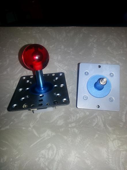 Here are the Seimitsu LS-60's, the adapter plates work brilliantly, and Randy's Hand Candy Ball Tops complete things very nicely.  At first I was going to swap out the blue shaft covers but considering my overall art design plans I actually think the Seimitsu Clear Blue shaft cover/Hand Candy Ruby Gemstone combination looks pretty flipping sweet.