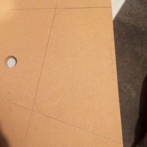 Once I liked the cardboard shape I transferred it to 3/4" MDF and rough cut it out with a jigsaw.
