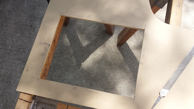 Nope.  Haven't cut that part yet.  It rained all weekend, so I didn't get any build done (again), except for marking out where furring strips will go.  It's sooo tempting to throw a second third screen in there, but I'm still on the fence.  As is it, this cab has ended up costing me almost twice what I expected it to.