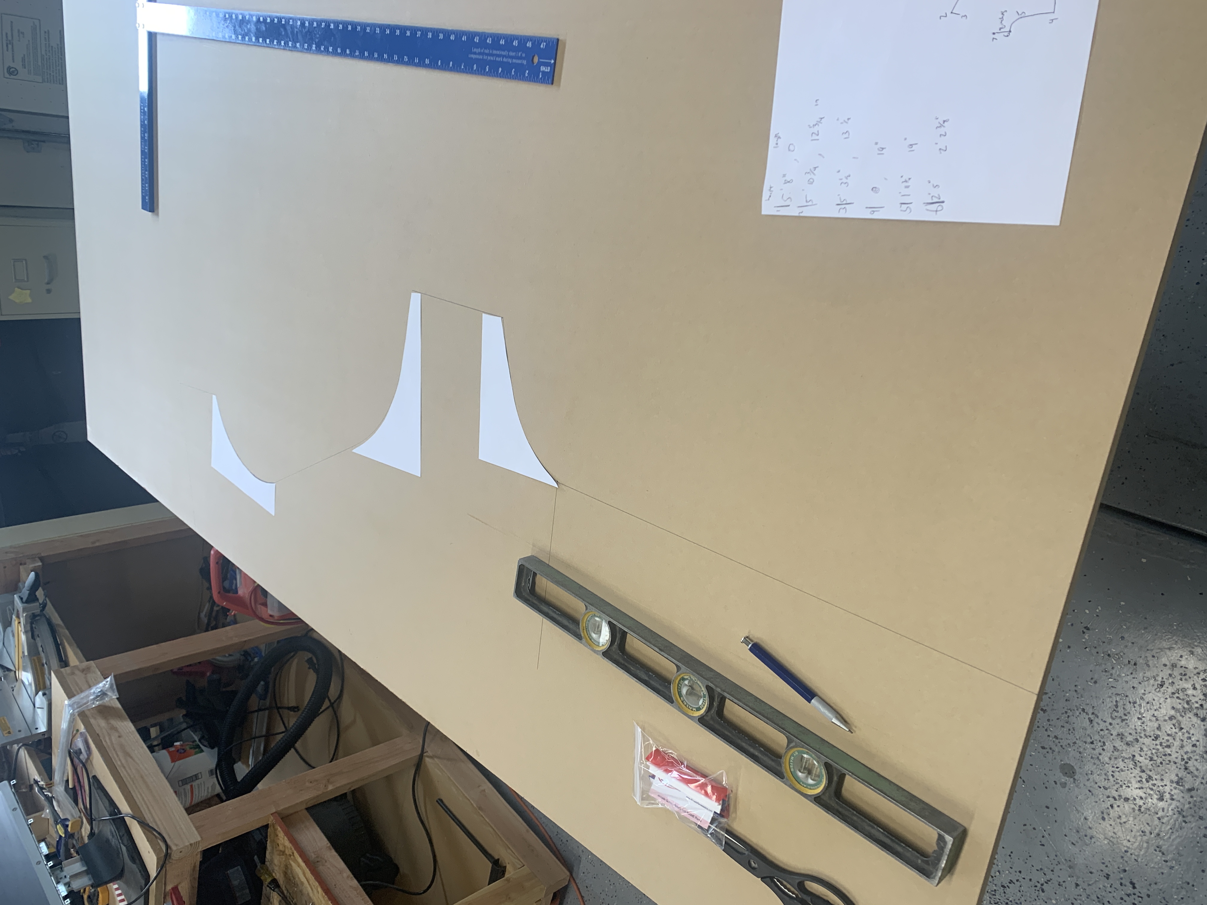 I took my sketchup design and got all the XY coordinates i could, and transferred those to the MDF and marked all the straight lines out.  Then i exported a PDF of the outline, and printed the curved parts so i could trace those.