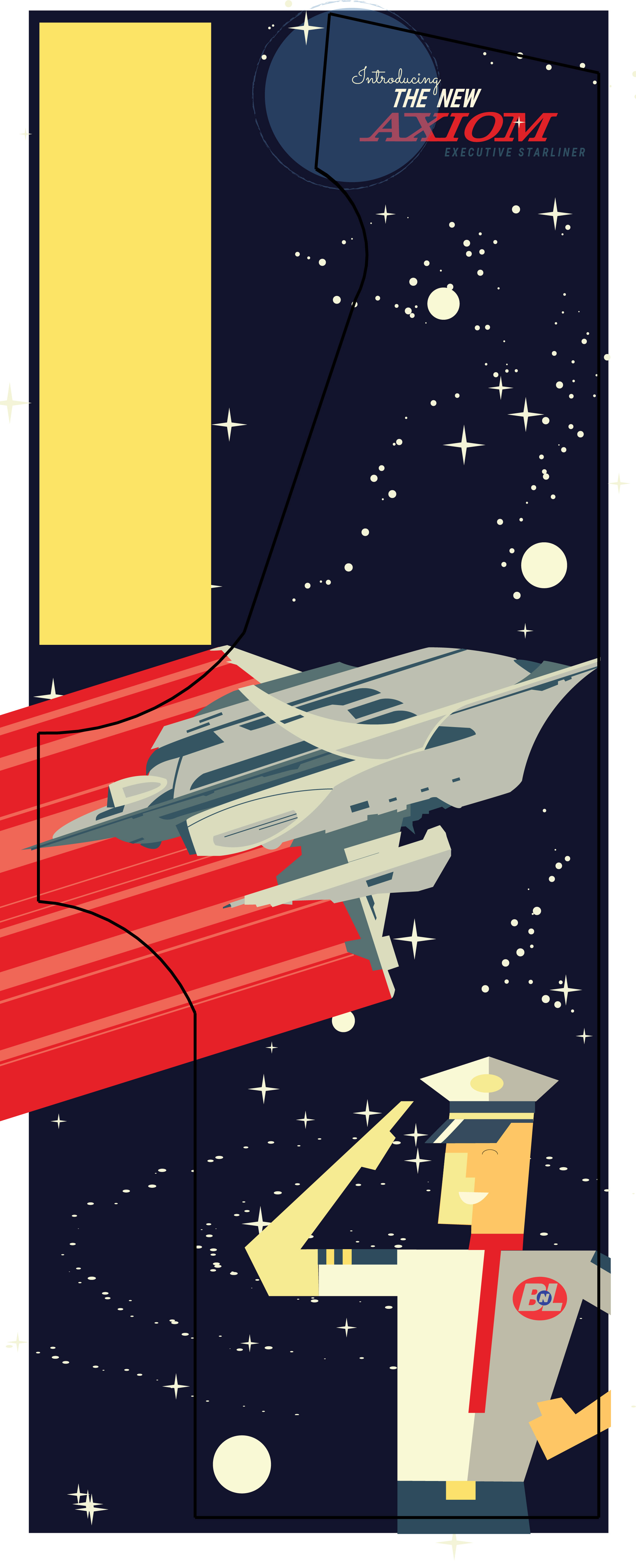 Here's version one of the CP.  not too busy i think.  i originally had a big wall-e and eve in the middle, but made them tiny flying around the axiom.