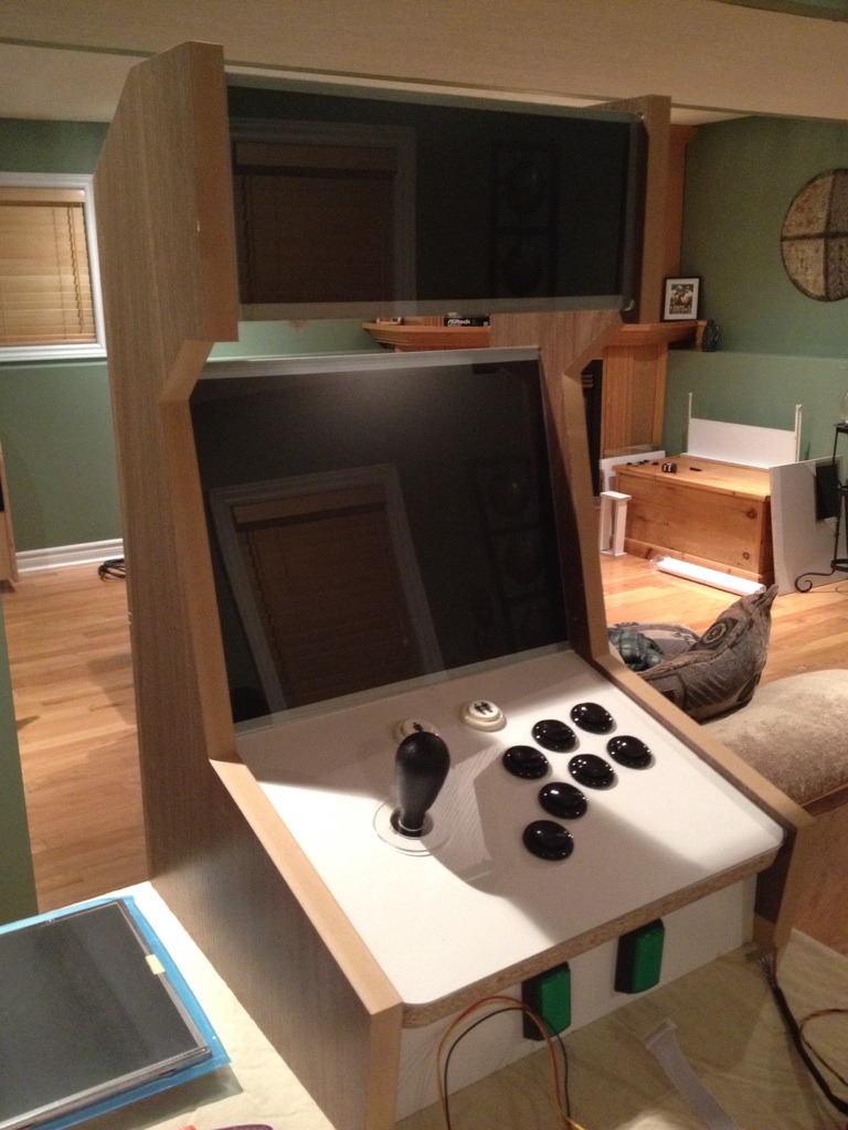 Unfortunately (cause I know you guys and gals love your pictures), I am starting this thread at the end of the prototype/build stage, however, because I like everyone on here so much, I am going to walk through every aspect of the final cab and its construction, from start to finish (with pictures), including all the software and programs we will need to run the 4 x LCD's. Here it is in its current state with the marquee and main LCD installed in mock sides for testing...