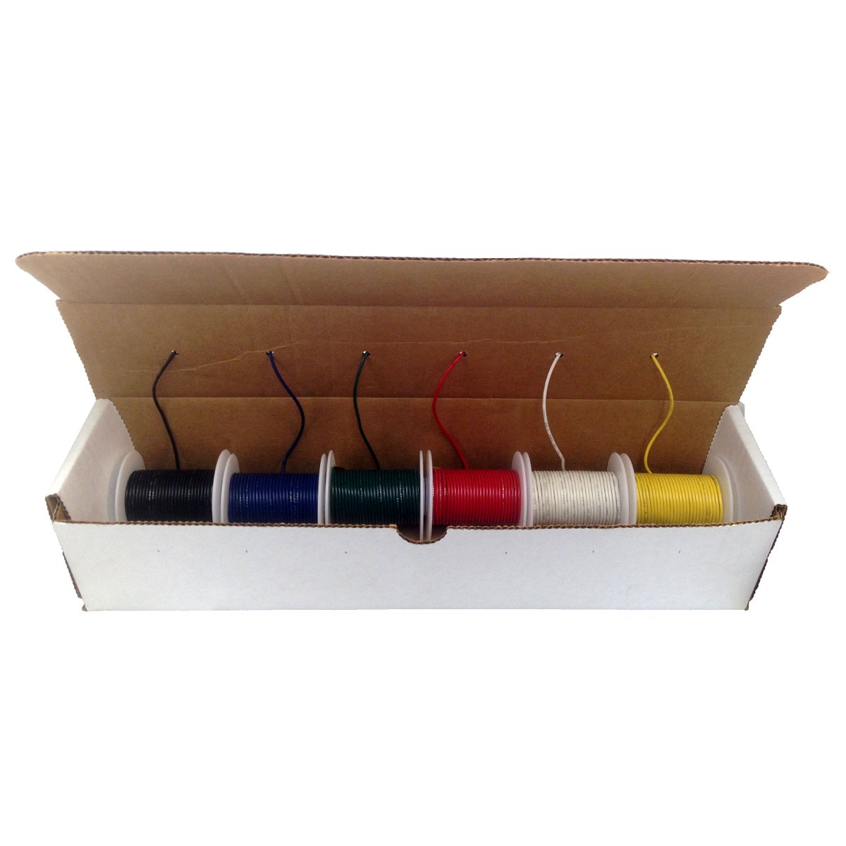 Stranded wire, 20-22AWG. Buy extra, measure many cut once. I use Velcro tape and staples to attach to my cab. As well as small black zip ties for when I make prebuilt wire snakes. I also try to avoid those little sticky zip tie pylons. Take your time, use proper tools, and the wire might need to be worked a little when it comes off the spool.