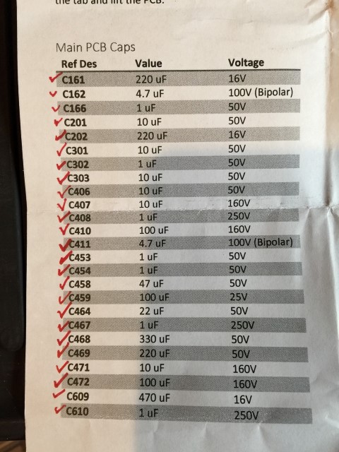 Thanks for the replies! I bought this capkit six months ago and it has been on the shelves since then, as I have been busy and am just now getting to it. Ian, I have heard nothing but praise about your kits, and I really wished that I had ordered one from you instead.