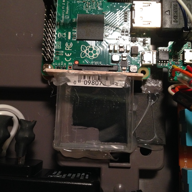 I also glued a piece of wooden popsickle stick across the top to keep the SD card from falling inside the case when inserting or removing it.