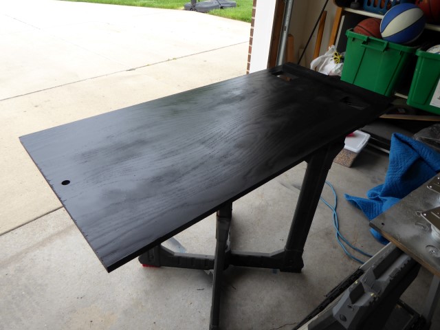 The black might be done.  I was painting until dark tonight and will know for sure tomorrow when I can check in the light.  Since the sides will be laminated I'm not bothering with taping anything off except the marquee area.  I'm going to leave that white.