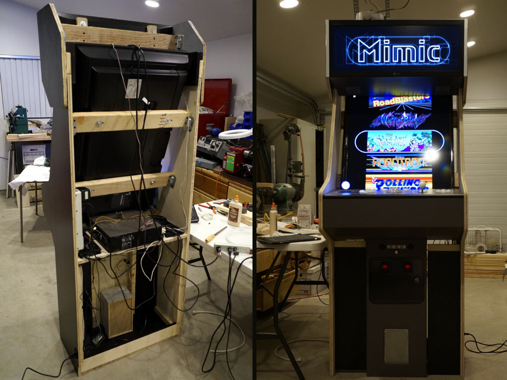 The real killer build, if anybody wants to pony up to do it:  Mimic has about 1.5" of dead space beside the TV.  A 46" LCD like this will sandwich into a 24" wide cabinet, with what was the bottom up against the left wall, and a slight gap to the right wall, to center the display area.  If you run a Spanpixel like Blip does, it will also fit nicely inside that 24" space.  You could make something with absolutely classic lines, a dynamic marquee, and your dynamic bezels will go within a half inch of being edge-to-edge as well as top-to-bottom.  It'd be great.  It'd be $1,800 in panels, but it'd be great.   :D